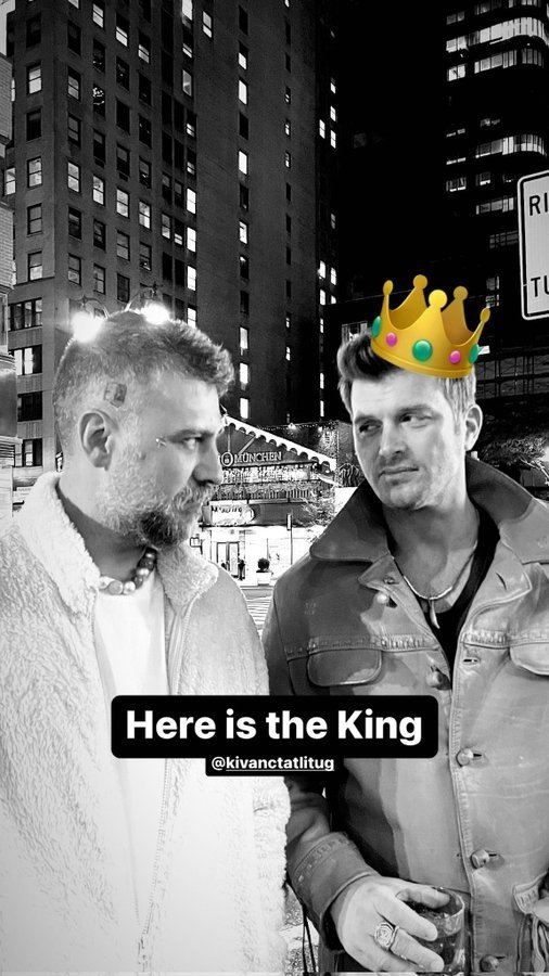 „Ето краля“ и след това снимка на Берен с надпис „& the Queen“ / „И кралицата“