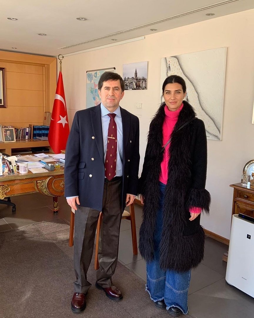 Той подписа: Пожелавам успех на посланика на добра воля на УНИЦЕФ в Турция Туба Бююкюстюн, която посети Генералното ни консулство, в усилията й да помогне на децата, пострадали от земетресението у нас. @unicefturk