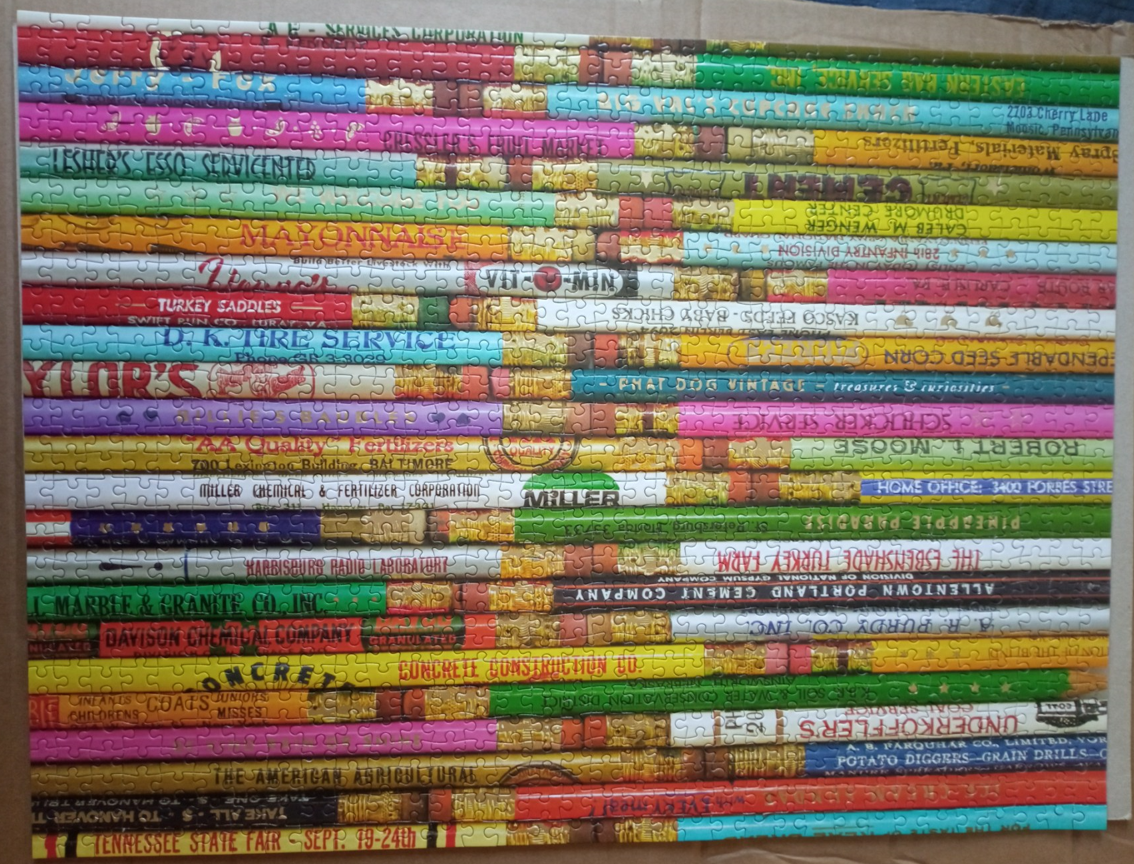 Galison, 1000. Картинката много ми допадна, аз обичам да търся разни буквички и шрифтове. Както забелязвате, надписите са един нагоре, друг- надолу и докато редях пъзела обикалях около масата като на турнир по снукър Grinning