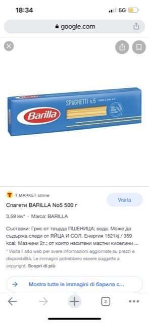 А аз искам да кажа, че в България има внос на Барила не само от фабриката в Гърция. Вкл. и от Италия има.