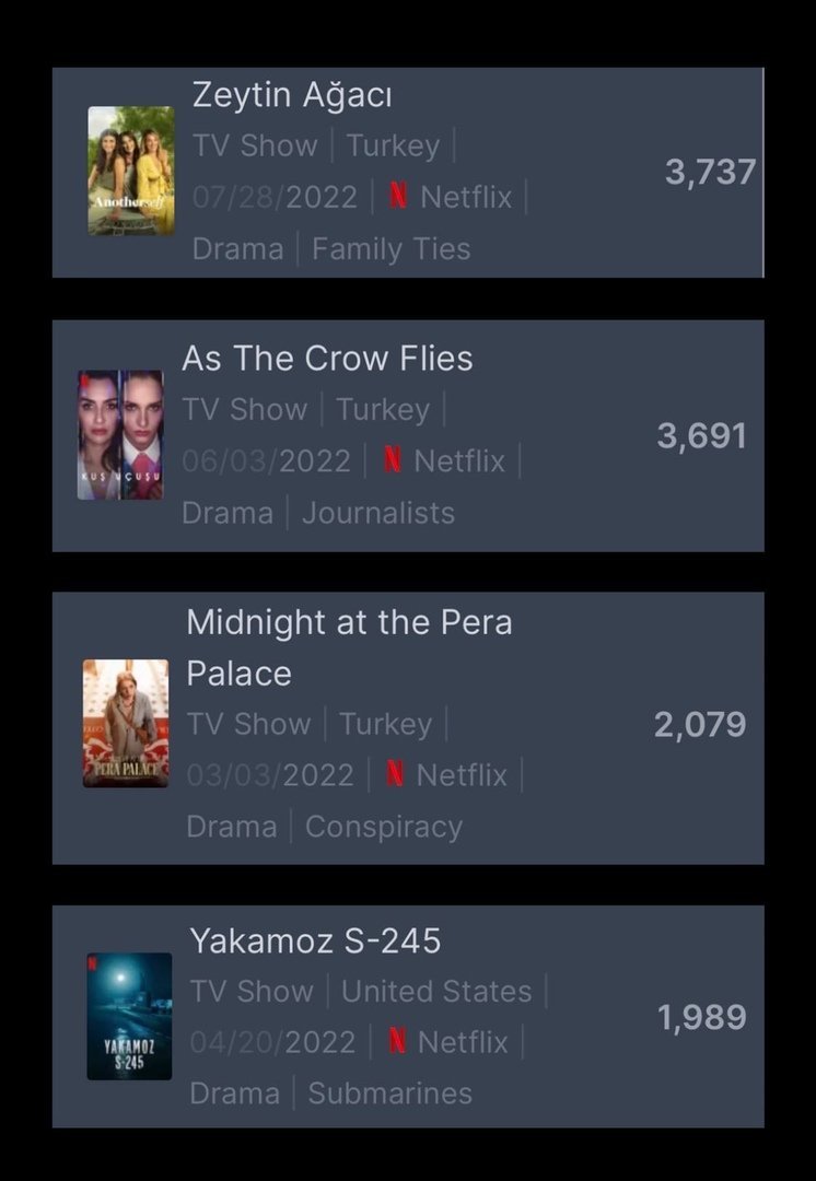 Обновлены данные рейтинга звезд, которые регулярно размещаются на IMDb, являющемся неотъемлемой частью телесериалов и киноиндустрии. Согласно турецким данным были определены самые популярные имена. В летний период на экран вышло множество постановок, таких как «Побег», «Суд», «Ветреный», «Постучись в мою дверь», «Услышь меня», «Птичий полет», «Кладбище» и «Неверный», а самые обсуждаемые имена были объявлены с обновлением данных. Известные имена, такие как Ханде Эрчел, Джан Яман и Седа Бакан, также нашли свое место в списке. Тем не менее, имя на вершине рейтинга кем-то было найдено на своём месте, со стороны других стало объектом критики..