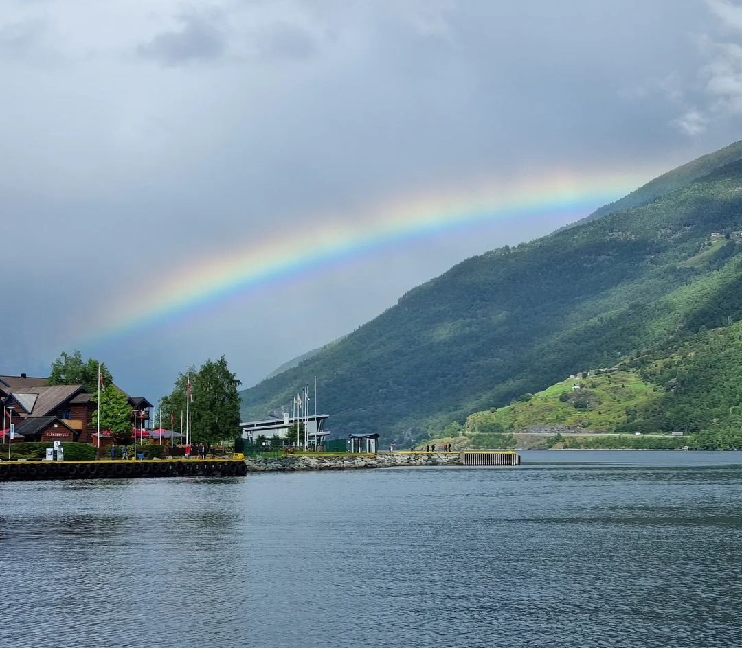 Сегодня мы ехали из Гейло в Берген в Норвегии. На водопаде Верингсфоссен была великолепная радуга.