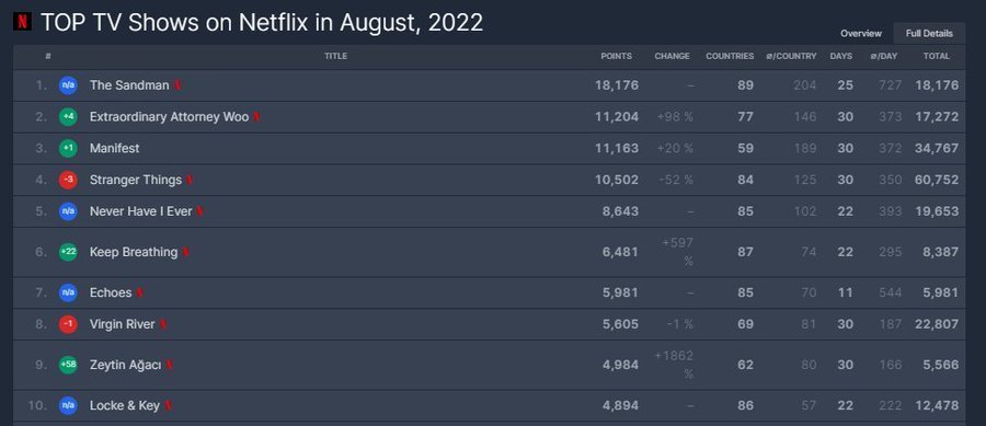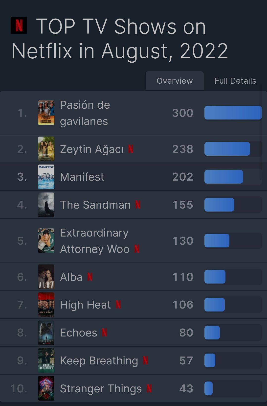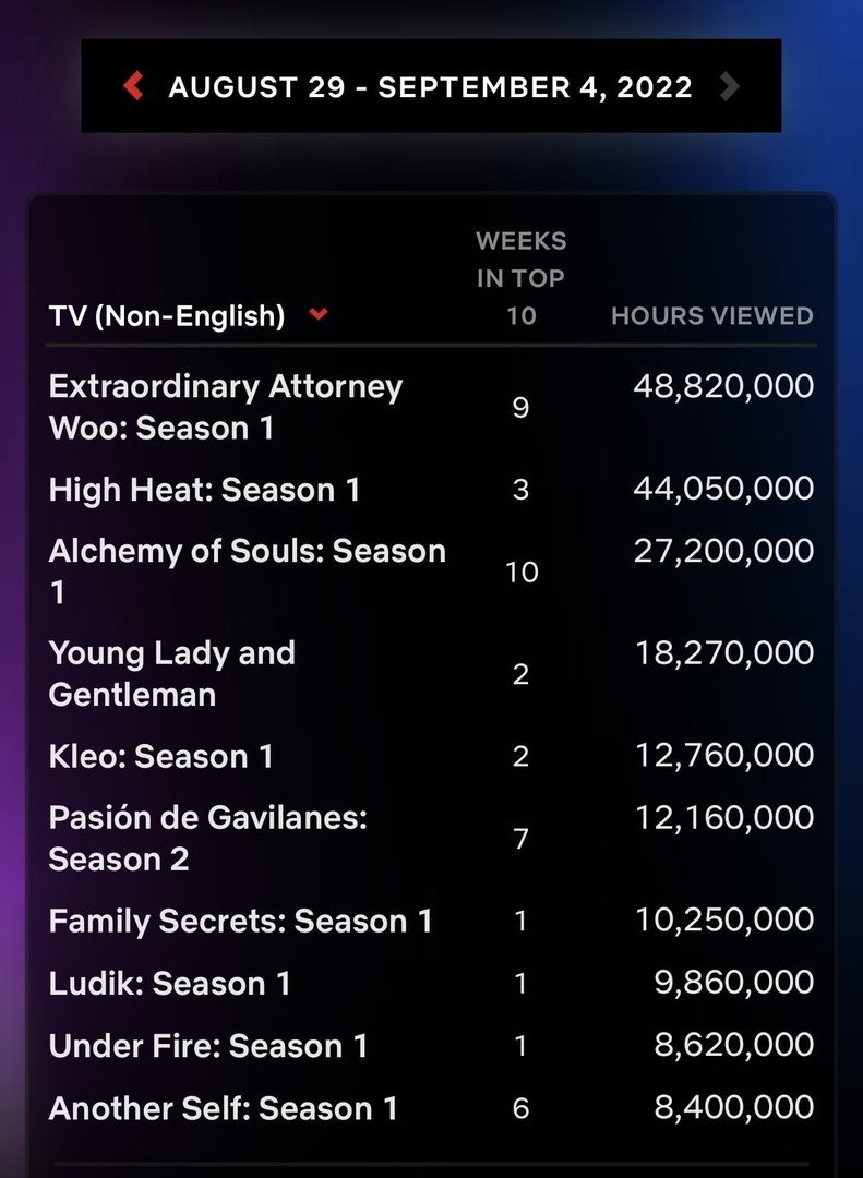 مسلسلها طلع top2 عندهم في شهر august و تاسع عمل اكثر مشاهدة خلال سنة 2022 متفوقا على مسلسلات عالمية ضخمة