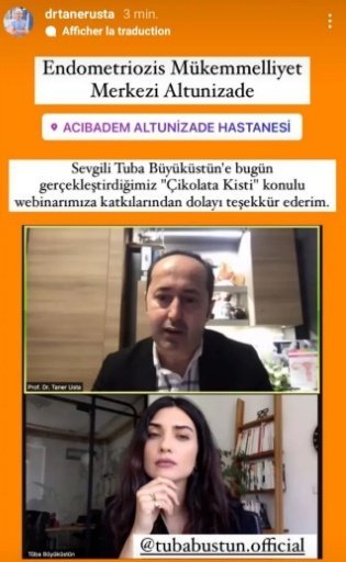Проф. д-р Танер Уста добави #TubaBüyüküstün към Instagram историята