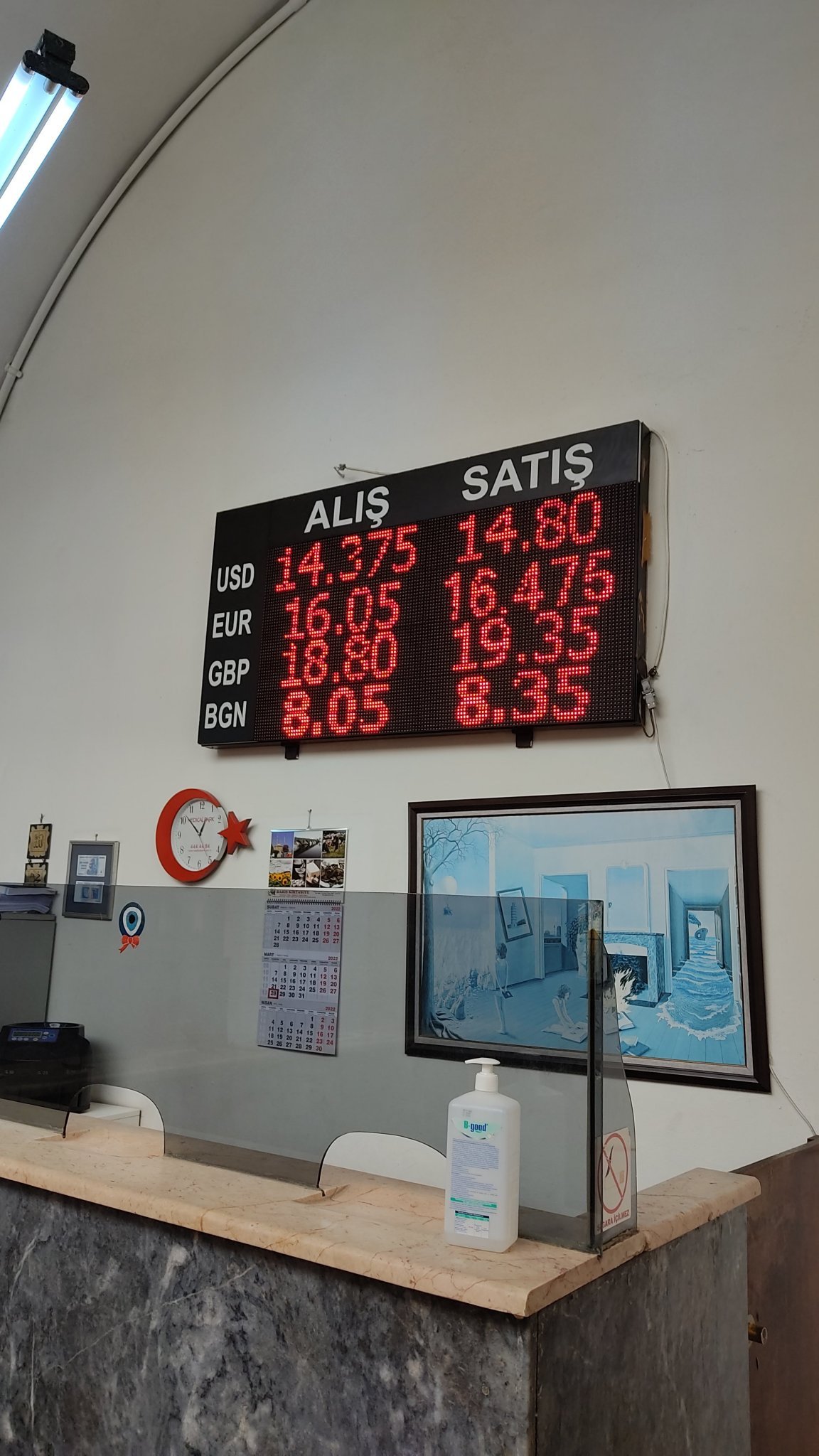 По стар навик от Истанбул, където е (или поне беше) проблем да намериш бюро, което работи с левове, предпочитам да си имам лири от тук.