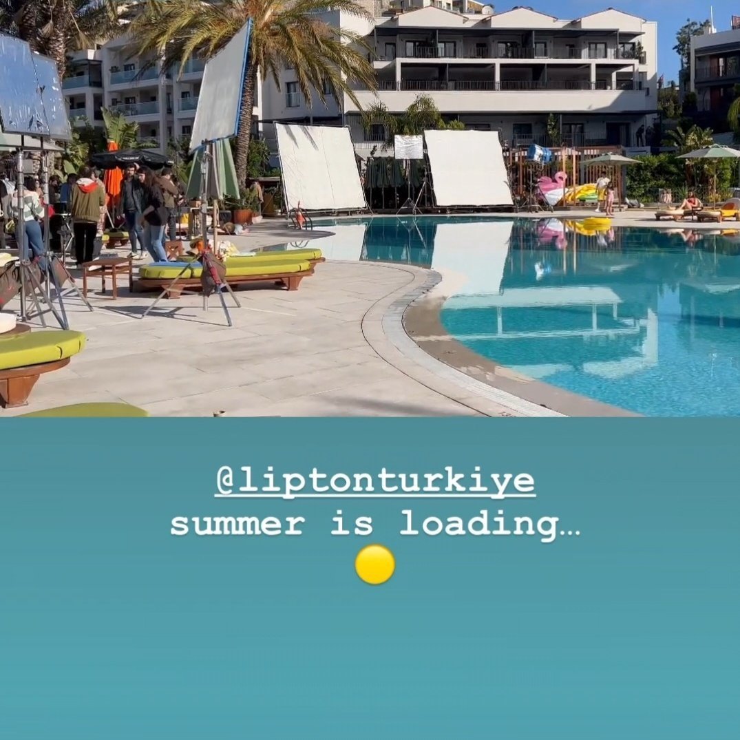 Керем със стилиста Серенай Дилер в Бодрум на снимките на рекламата на студен чай "Липтън"„