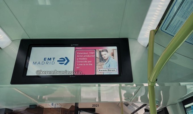 Феновете направиха снимка на банер в автобуса в Мадрид, където е посочена информация за Керем: Той е роден през 1987 г. в Истанбул. Актьор, продуцент, модел. Известен с телевизионния сериал "Почукай на вратата ми".