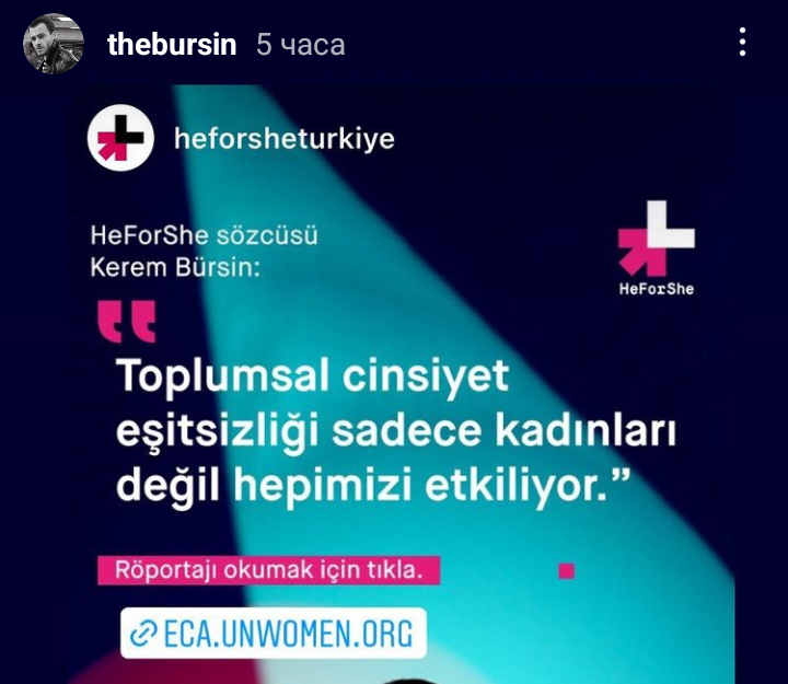 Връзката, посочена в сторито, е свързана с организацията на ООН за равенство между половете и овластяване на жените, известна още като UN Women. Тя е структура на ООН, която работи за равенството между половете и овластяването на жените. Под нейно крило е явно кампанията HeForShe, в която Керем участва - не съм сигурна в това, но най-малкото я подкрепят. В сайта на организацията има и статии, свързани с Керем. Ако искате, може да ги минете през гугъл транслейт и в общи линии се разбира за какво става въпрос.