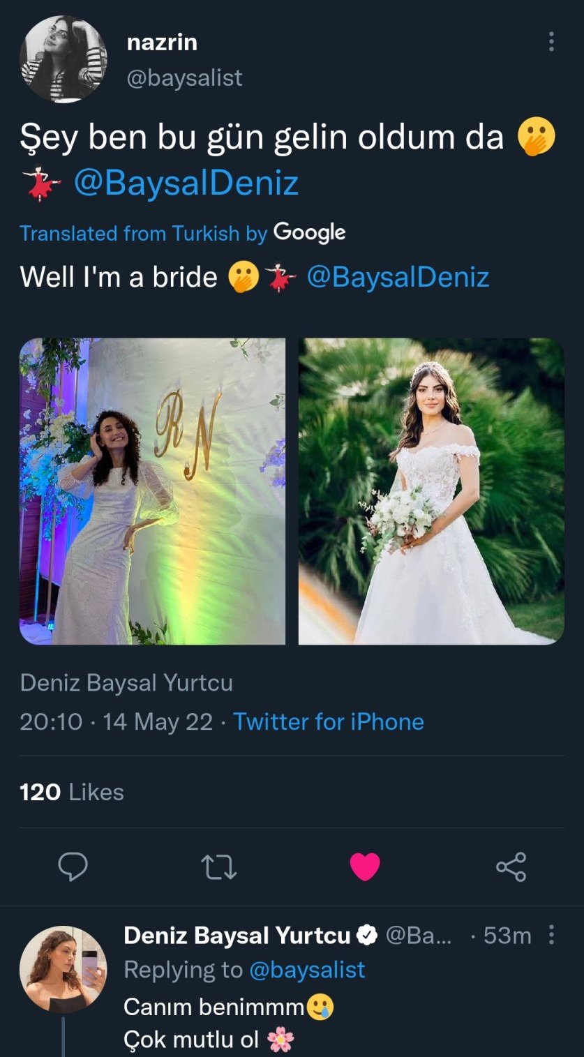 Дениз поздрави едно момиче, което написа, че се омъжва. 😀