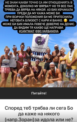 На въпрос №4 - Карин и Ванко, а вече и Бо и Анелия /или поне ми се иска предвид заформената коалиция, иска ми се, а и мисля, че ще се усетят за Кари и Ванко/
