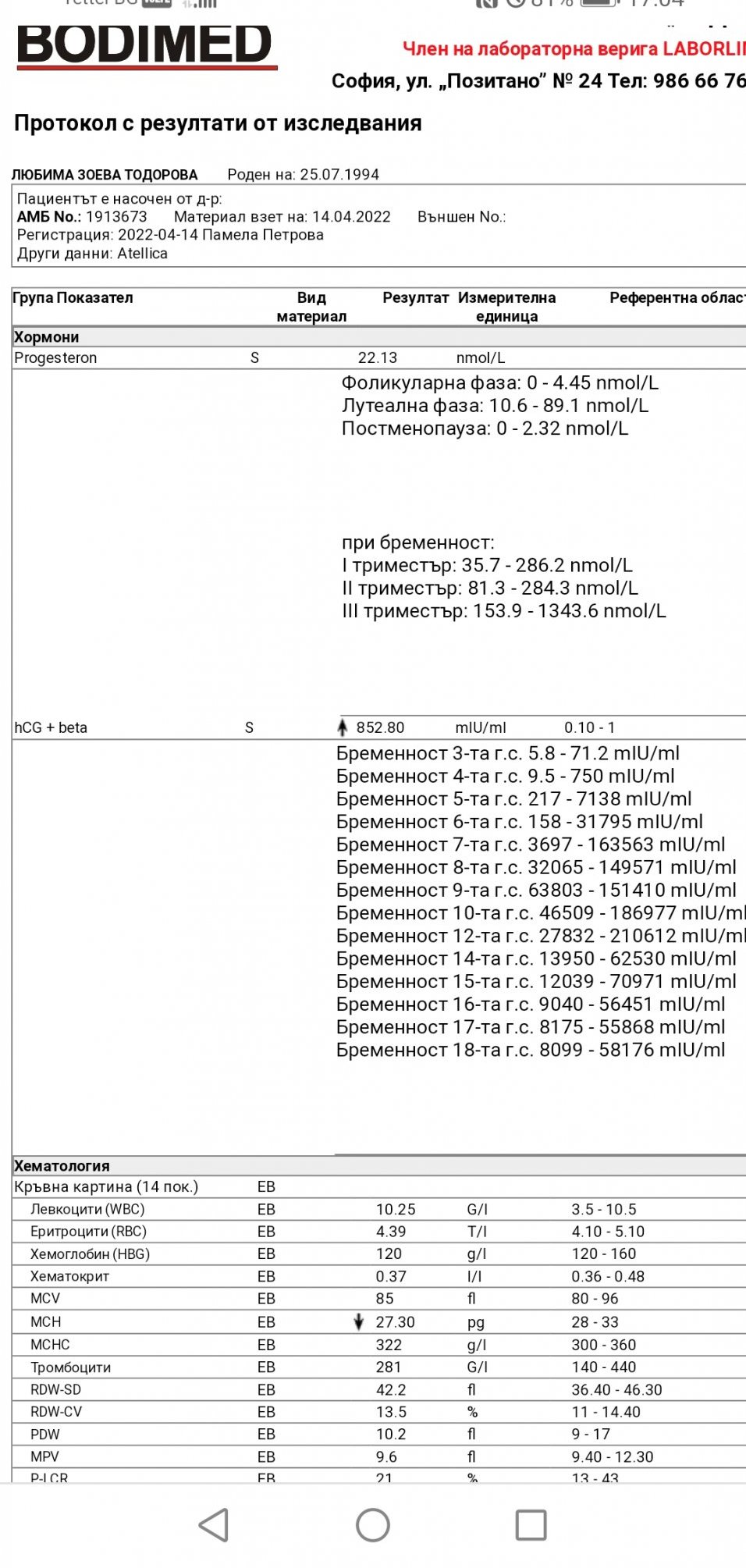прогестерона ми се струва нисък като гледам скалата но при всеки е различно обърнете се към АГ ЧХГ за седмицата е супер успех до финал