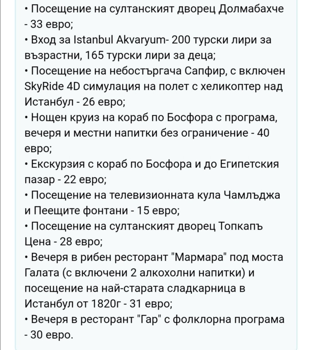 Вечеря в ресторант под моста Галата - 30 евро (никой не отиде, хотелът ни беше близо и можеше всеки сам да се разходи до там при желание)