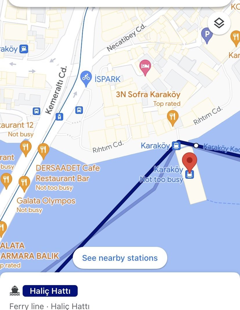 За маршрутите на корабчетата препоръчвам да си инсталирате приложението на Sehir Hatlari. Така може да си планирате предварително. Ето, примерно сега видях, че до Ортакьой /понеже някой нагоре питаше/ от Еминьоню има чак в 17:55 корабче, преди това - не. Като се избере начална спирка, може да се види като крайна спирка кои опции дава.