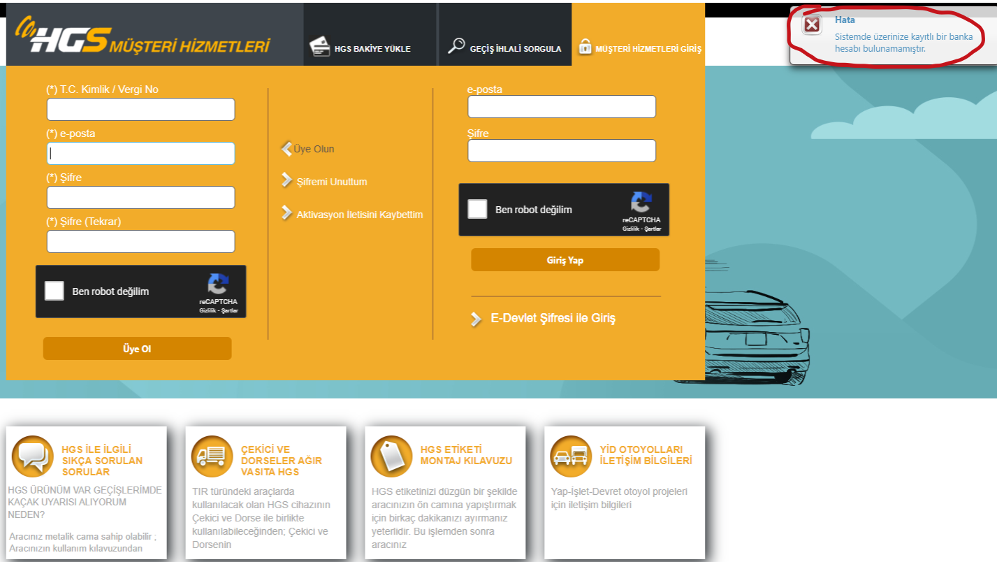 Вторият, с лупичката, дава възможност да си проверите дали имате глоби. При влизане през него трябва да изпишете номера на колата си (с латински букви), да сложите отметка, че не сте роботи и да изберете за кой вид платен път искате да проверите. При всяка отделна проверка трябва да слагате отметката. Съответно на нас обичайно ни трябва първата опция, а това, което излиза при липса на глоби, е "SEÇTİĞİNİZ PLAKA NUMARASINA AİT KARAYOLLARI GEÇİŞ İHLAL KAYDI BULUNMAMAKTADIR !", изписано със стряскащо червени главни букви. Тази услуга е достъпна и без регистрация.