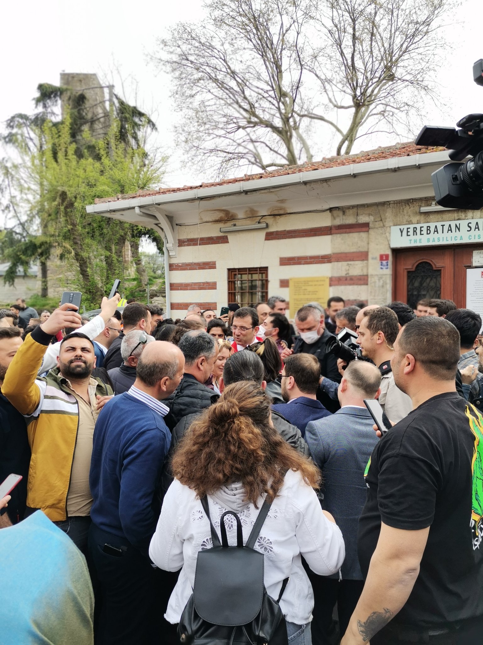 Пред Йеребатан имаше някаква суматоха, мисля че може би ремонтът е завършил - човекът с червеното, май е кмета на Истанбул.