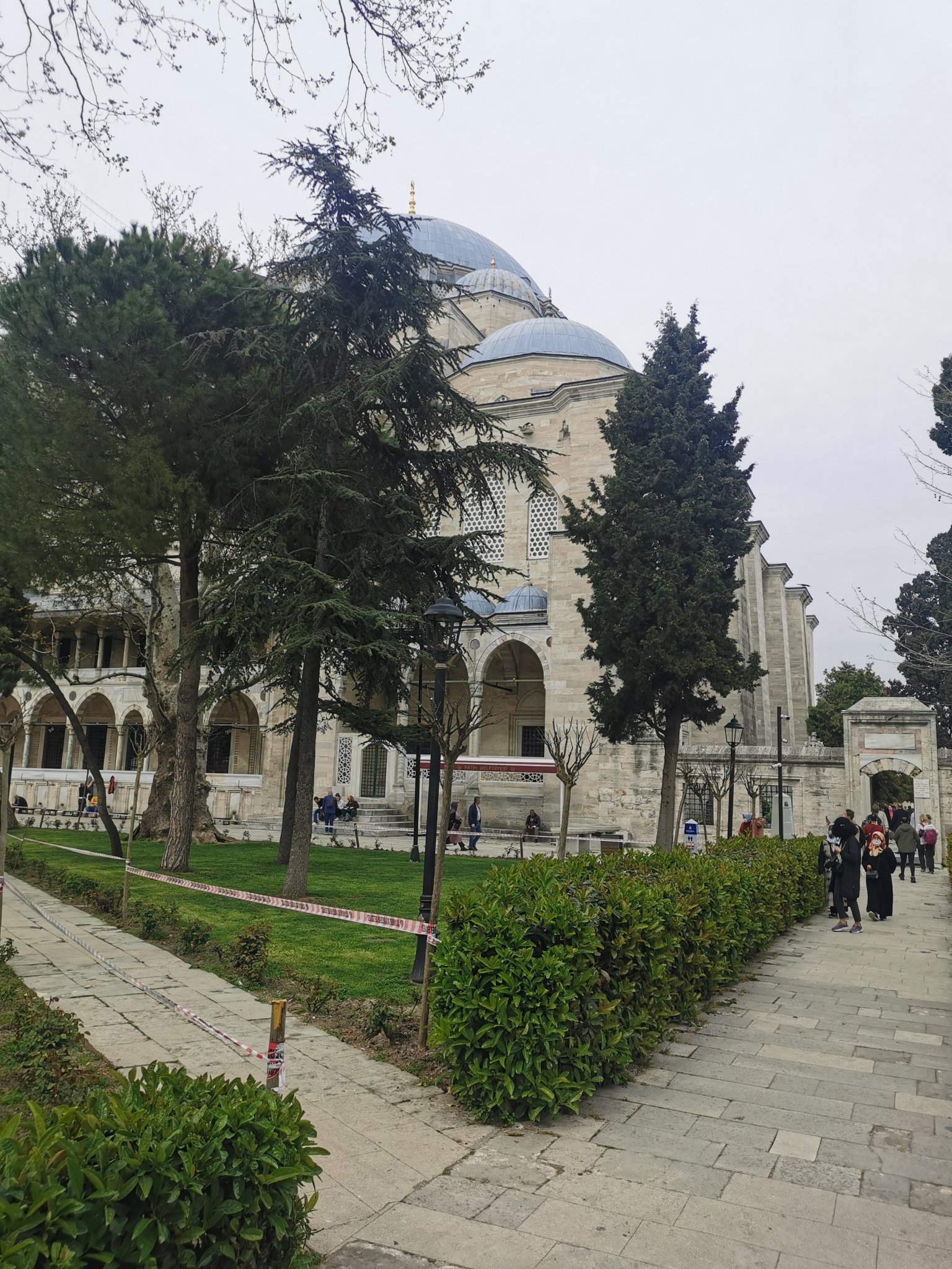 След като хапнахме се насочихме към египетския пазар, там беше такава лудница от хора, че ако влезеш в средата на тълпата, нямаш шанс да се добереш до магазин нито от ляво, нито от дясно. Минахме транзит, за да излезем на задните улички, там отново потърсихме чантата, но само на едно място, продавачът не му се пазареше и съответно не я взехме. Не знам при вас как е, но на мен ми направи впечатление, че когато има мъж в компанията някакси не са много настроени за пазарене. Когато сме били само жени, веднага ни грабват и не ни пускат с празни ръце да си тръгнем, но сега не беше така. Незаинтересовани сякаш бяха. Както и да е, придължихме нагоре из уличките и точно щях да отварям картата, защото имаше изнервени и изморени от лудницата, когато от ляво на нас се оказа джамията Сюлеймание. Бях чела и ми се струваше нещо сложно да я открия откъм правилната страна, но случайно го направих. За съжаление, никой нямаше желание да влезем, бързаха да се приберем и единствено тази снимка успях да направя: