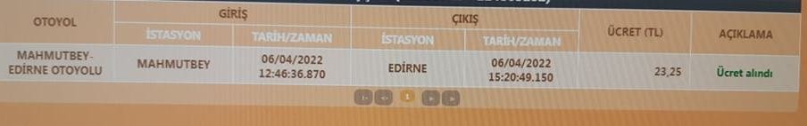 Особеното е, че при проверка с бутона "HESAPLAR" се вижда само таксата за връщане и затова написах, че такса за отиване не е взета.