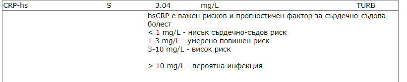 Високочувствителния CRP също ми е малко над горна граница и ми пише висок риск от сърдечно-съдово заболяване. Над 3