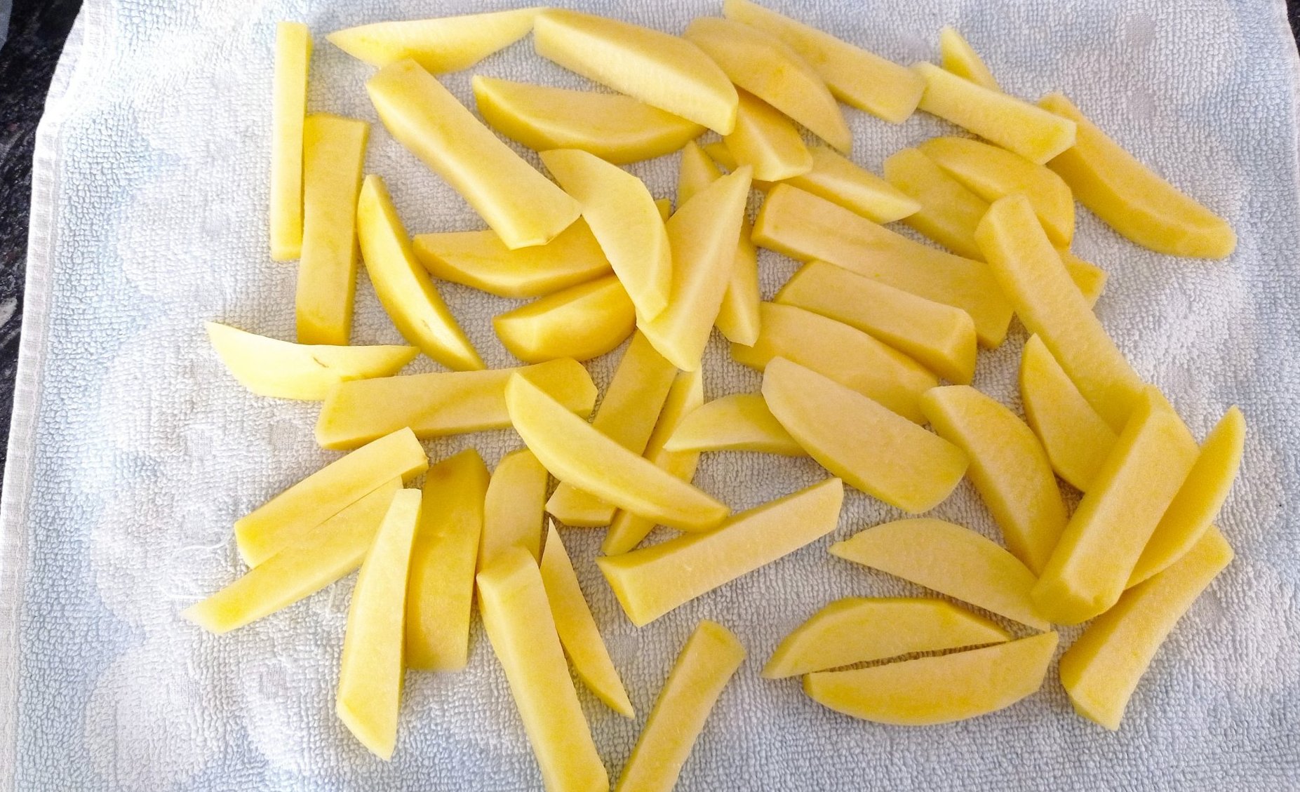 От любопитство взех и бланширани да пробвам-същия отврат са 🤢.Обикновени белени картофи,час,че и повече ги държа във вода,после добре подсушени,сипвам олио на око,сол,и ги мятам във фраера.Обичам ги по-изпържени,и ги държа 22-23 минути.