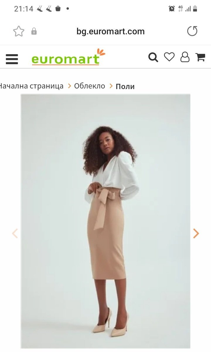 Руми, имам подобна на твоята риза, но черна и се чудех дали да не съчетая за бала с тази пола https://bg.euroma-reg.eu.350/2022-/details/sateen-womens-skirt-- … amel-309383/42147. Може и на теб да ти хареса. Иначе и панталон търся или рокля,  но още нищо не съм си харесала.