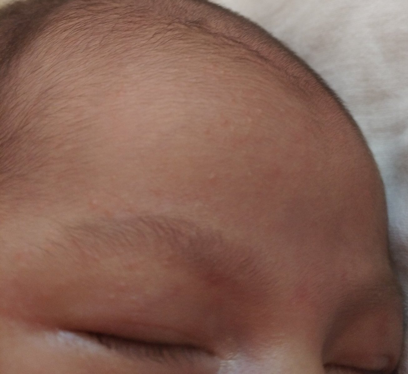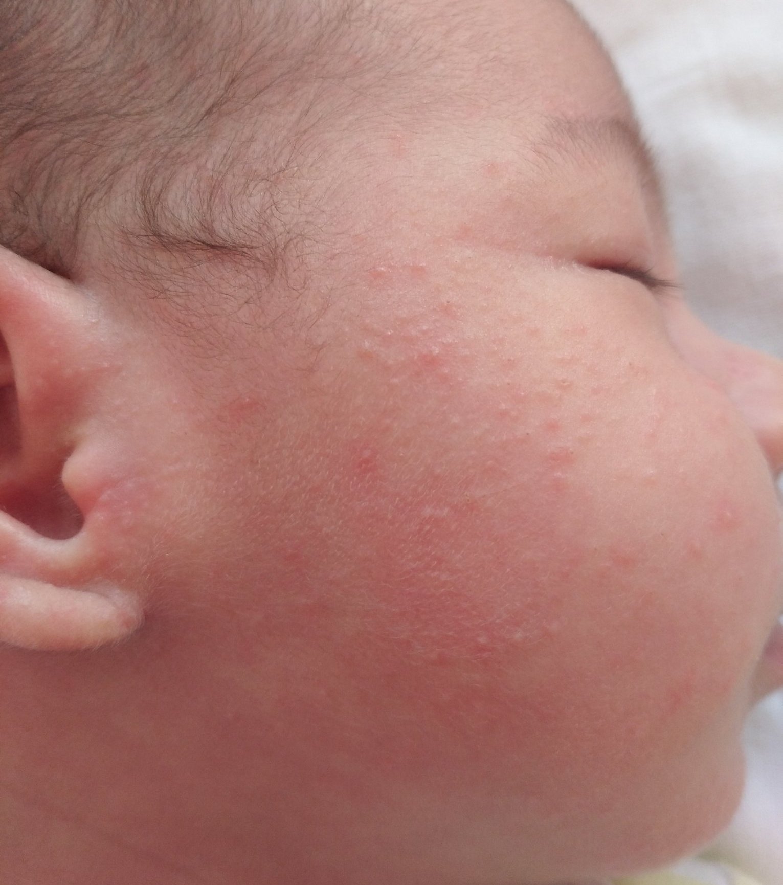 Появи се обрив на бебка преди седмица. Отначало не обърнах внимание, после реших, че е от претопляне. Започнах да я обличам по-леко, спрях климатика, че и навън беше топло. После реших, че е бебешко акне, но се появиха и по главата. Струва ми се, че пъпките се увеличават.