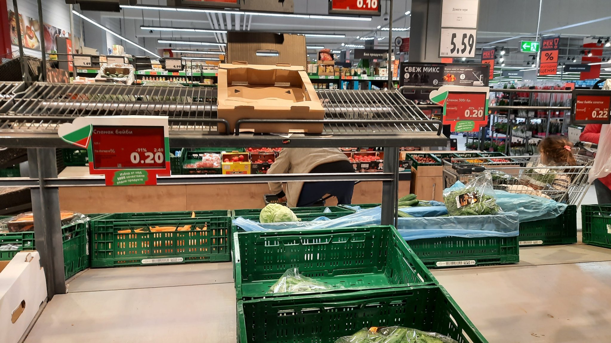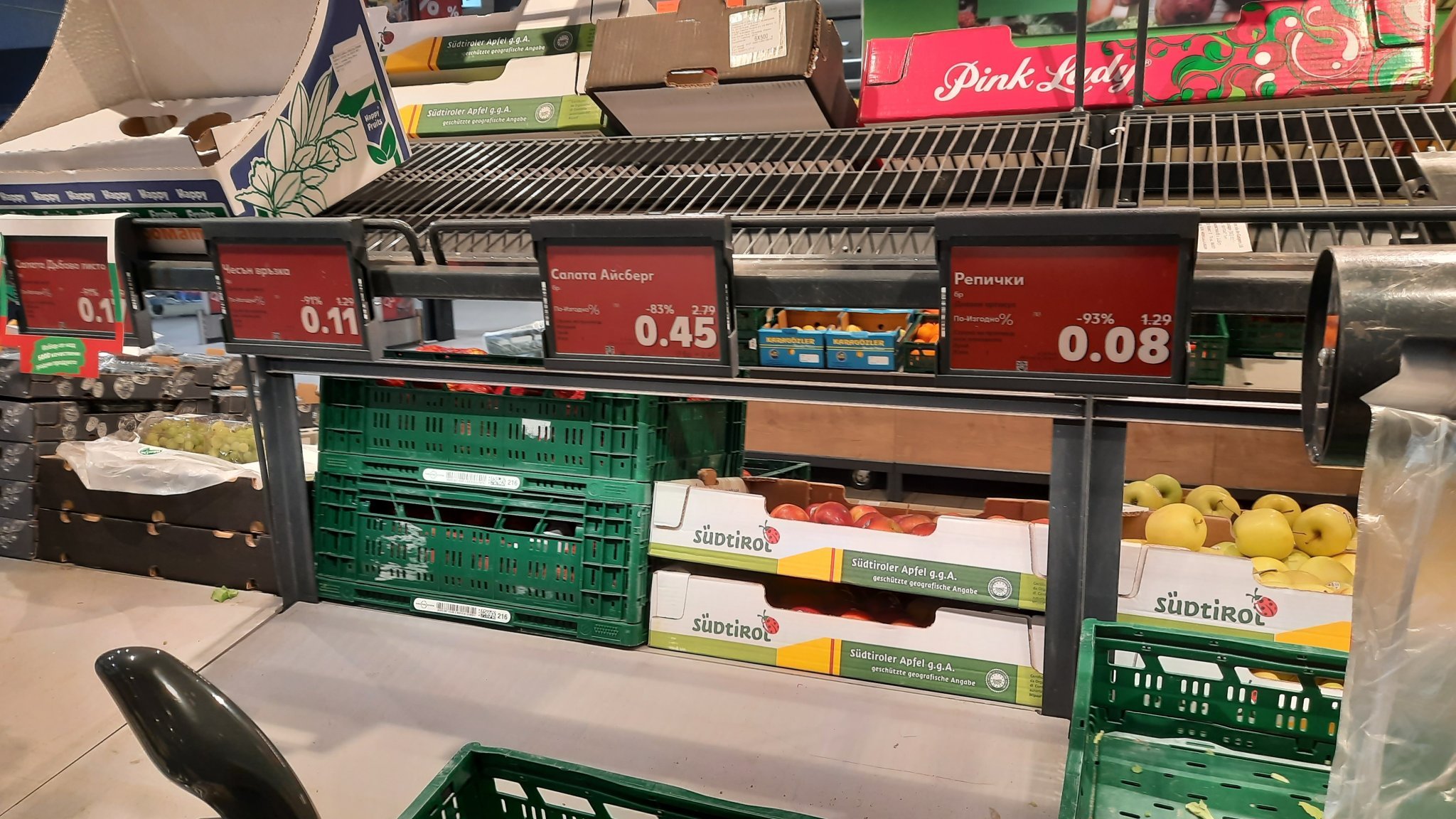 Днес при нас имаше много месо с оранжев стикер-30%, плюс една малка част с -50%. Някои неща и с -30% не ми се видяха изгодни- преди някои редовни цени бяха по-ниски от сегашните -30%...🤔 Доста намалени неща имаше и при плодовете и зеленчуците. Изкуших се от една салата Романа по 1,20 или 1,30 лв...
