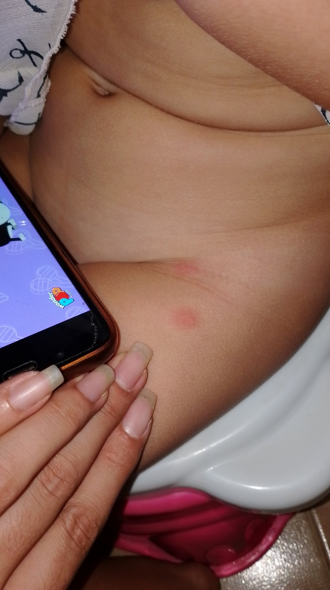 Не, не са изчезнали, тя има и 1 на дудата, но нея не съм я снимала. Снощи преди да я сложа да си легне се появиха, а не е излизала никъде. Само по гащички е.