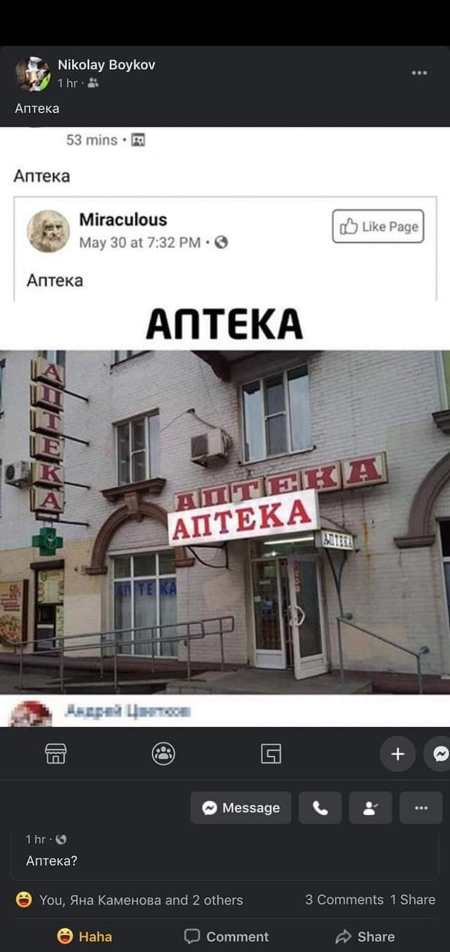 Търся аптека. Някой да е виждал наоколо....?!?!