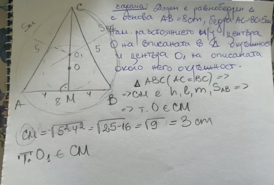 К е пък среда на AC, O1 лежи на симетралата на АС. АК=КC=2,5 см.