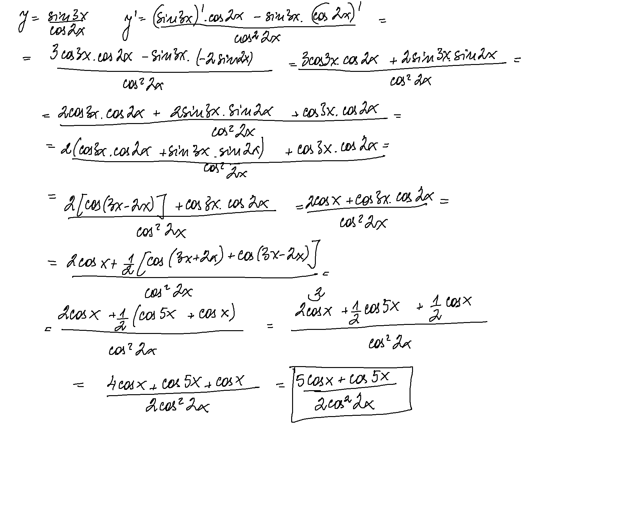 Преди ден-два  помогнах с едно примерче на дете 11 клас. И учителката му казала, че не е така, като станало да я разпише.. Ама да обясни защо не е така- не, просто не е така. 200 пъти се върнах и не си намирам грешката - първо с правилото за диференциране на частно, после със съобразяване с производни на съставни функции, накрая с преобразуване с  тригонометрични формули. Единственото, което ми идва наум, е да си е  решила дамата, че верен отговор е само такъв без преобразувания..Но едва ли е това, понеже е щяла да спре детето в даден момент от по-нататъшни пресмятания..Ако някой за друг проблем се сеща, да каже, моля Simple Smile
