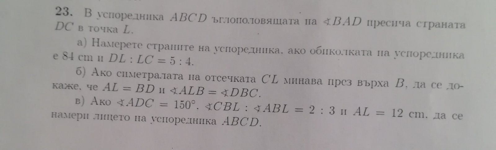 Здравейте! Моля за помощ с подточки б и в на тази задача за седми клас. На подточка а получих 15 и 27 см. Много благодаря!