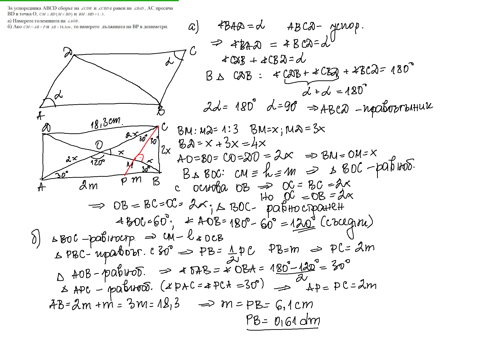Триъгълник АВМ правоъгълен МВ=1/2АВ