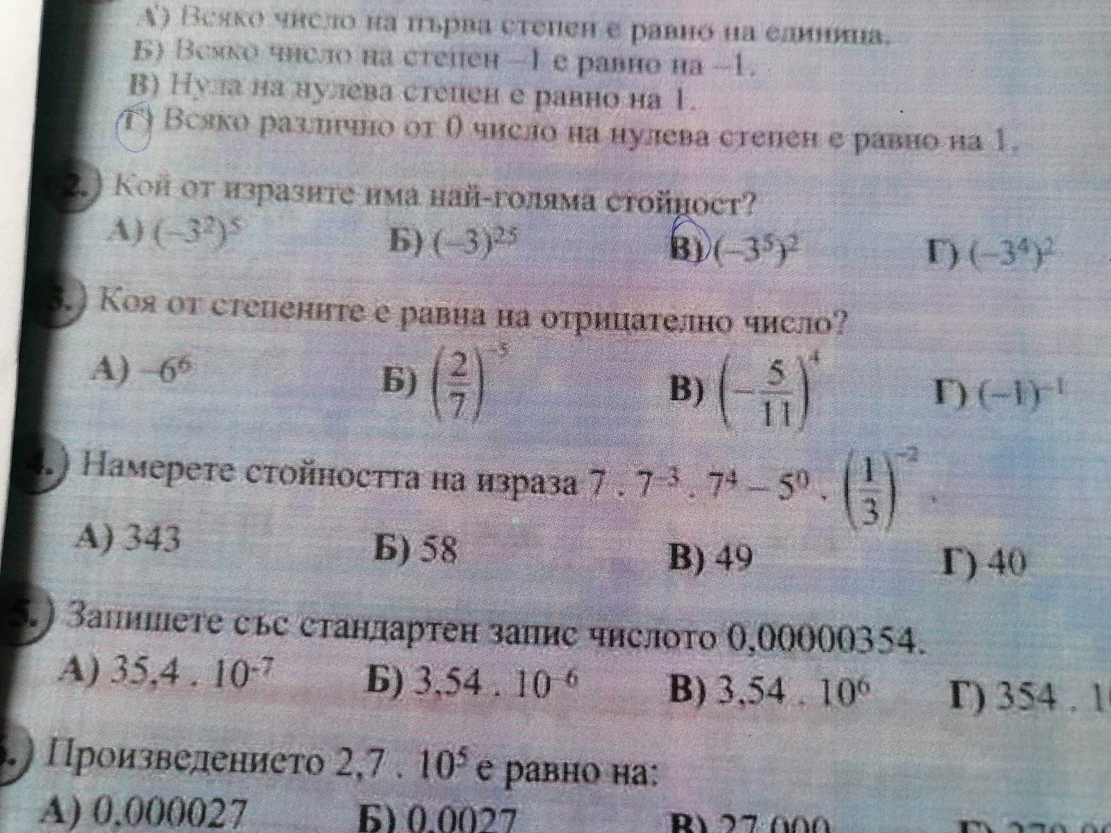 според дъщеря ми задача 3 има два верни отговора А и Г. На мен степените не са ми силата. Вие как смятате?