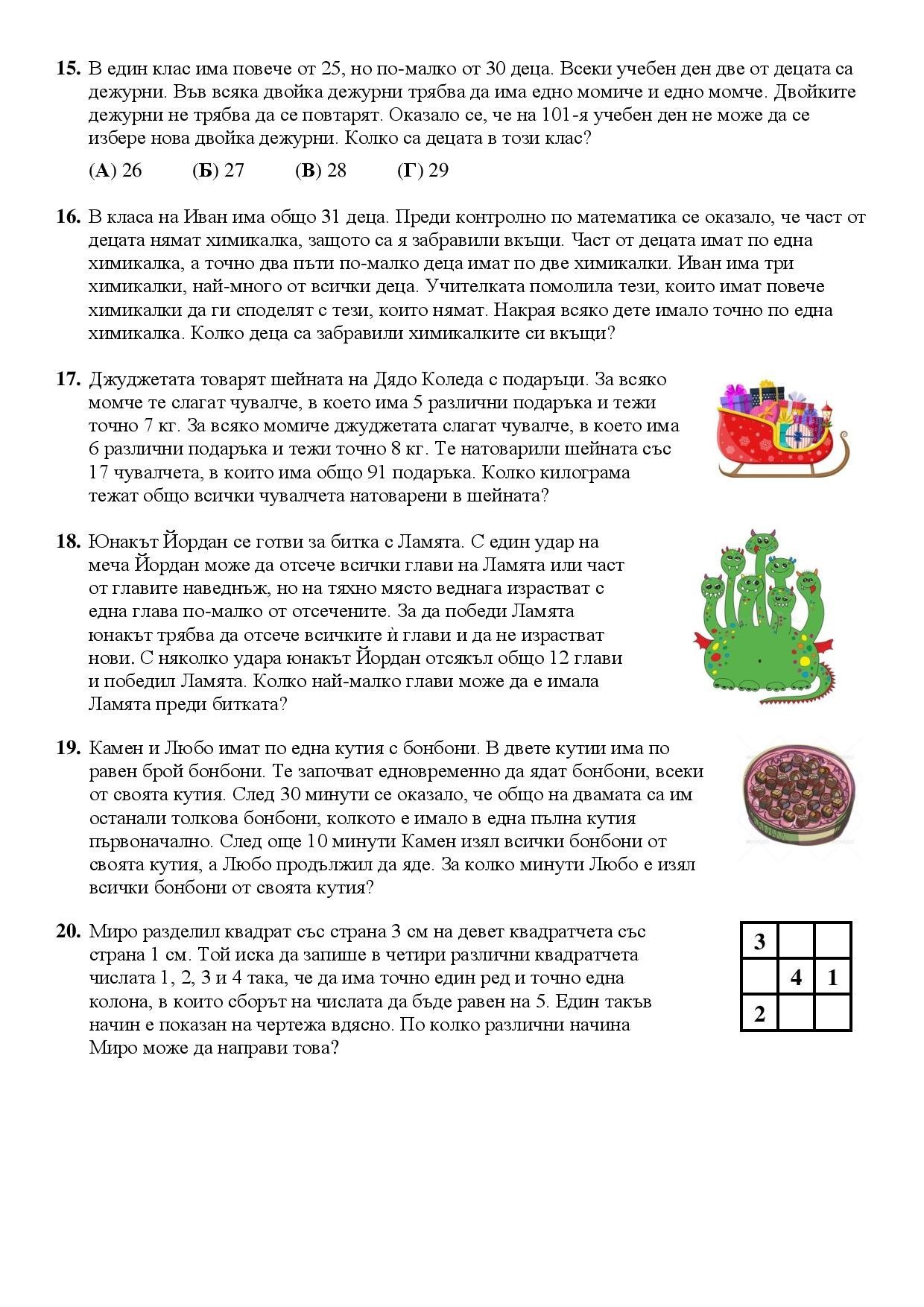 Примерен тест по формата на "Математика за всеки" (4 клас).