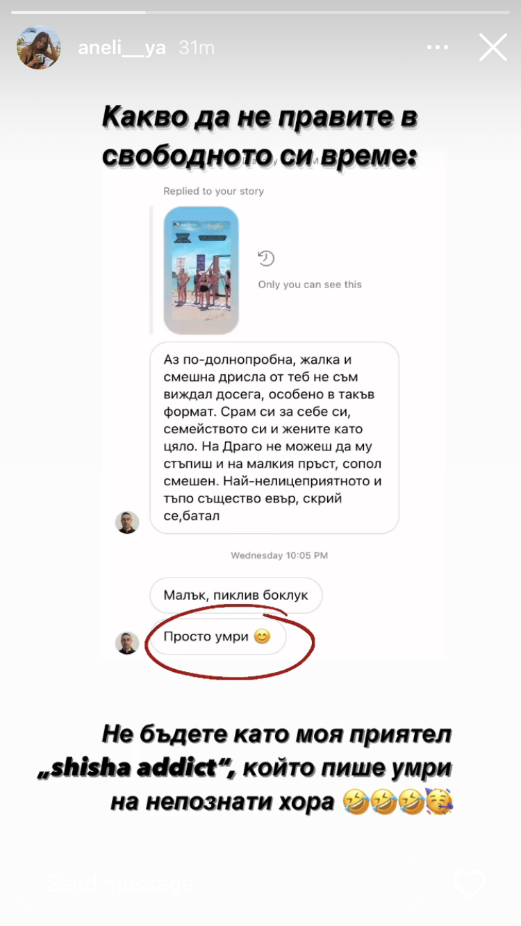 Онази вечер имаше подобно в стори на Борислава… Е, без пожелания за смърт, но не се знае какво е избрала тя да публикува…