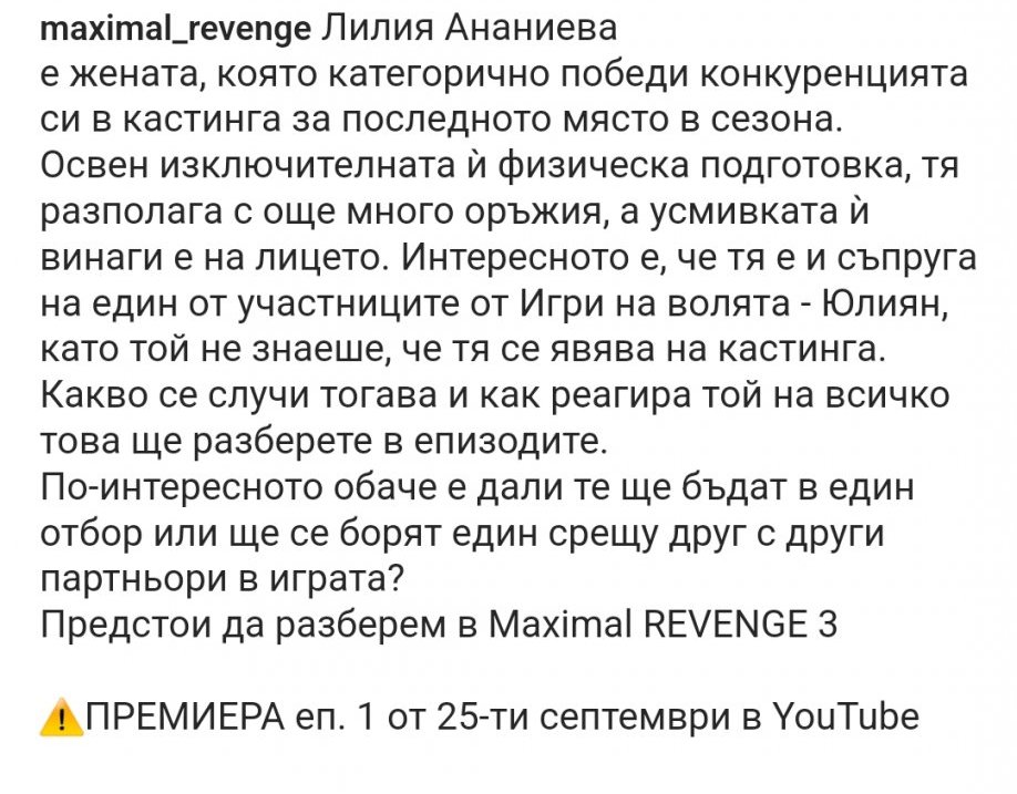 А преди много време, ако помните, Юлиян пускаше сторита как тренират усилено с нея и нищо голямо предстои. Но после реших, че е било заради неговото участие в Максимал.