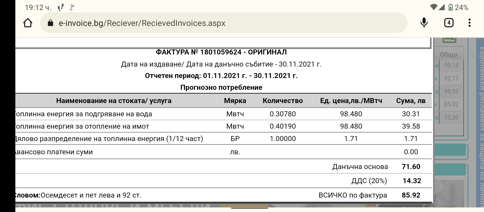 М.г. цената е била 99 лв без ДДС на мвч при 20 % ДДС. Този месец цената е138 лв без ДДС, обаче са свалили ставката на 9%! Това не го бях чула.