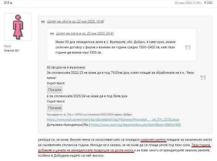Аз също съм от Добрич и сме в траур заради рентата тази година Simple Smile говорим за земи 3-та категория в района на Каварна и Балчик, над 120 дка. Миналата година беше по 100-150 лева, сега са предупредили за макс 50. Това си е чувствителна разлика, а знам, че добивите не бях чак толкова лоши.