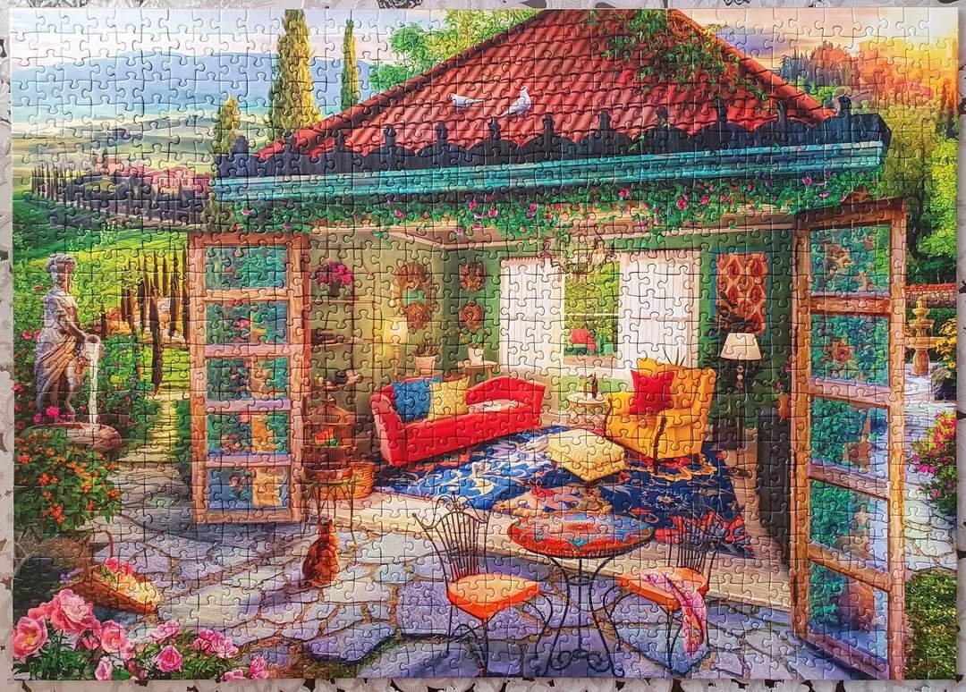 Чери Пази 1000 части. За първи път редим на тази марка и сме доволни. Добро качество и хубава картина! Цветята не са ми любими /друго си е някой дракон, лъв или изглед/, ама жената е във възторг!😄😄😄