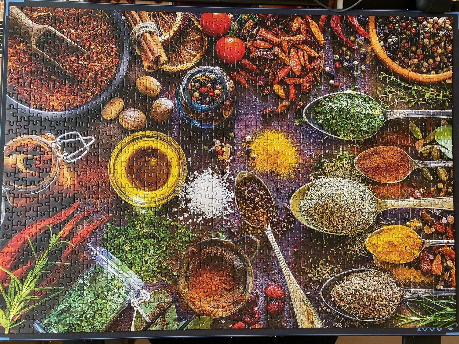 Всички парчета са налични. Хубав пъзел с лесни и трудни области, но не неприятно трудни.