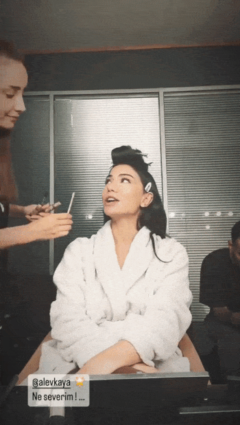 Не може и без песните на Сезен Аксу, докато я гримират. Това е песента: