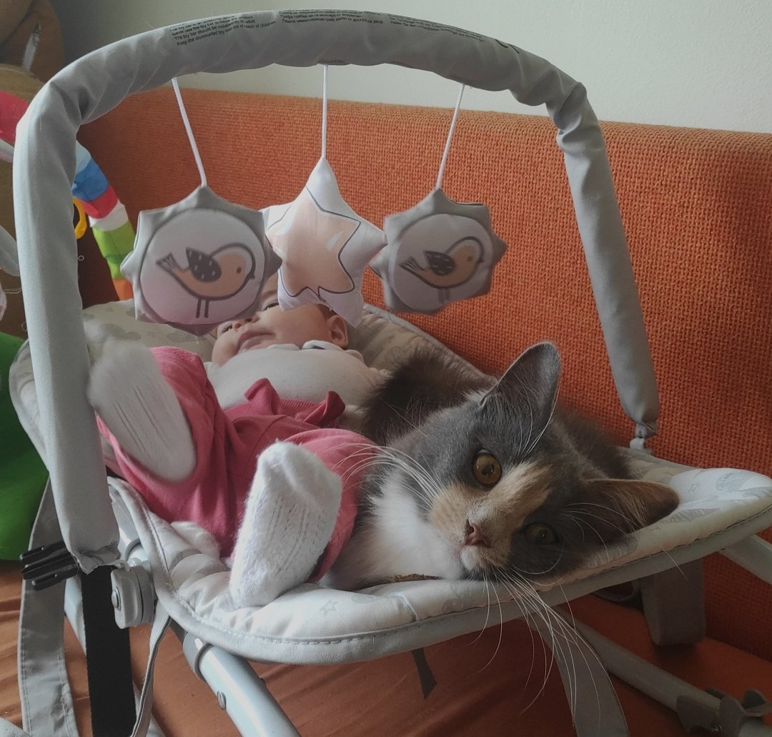 Чумито си живее живота. Нито ревнува, нито търси контакт. Спи, яде и гледа високомерно. Grinning