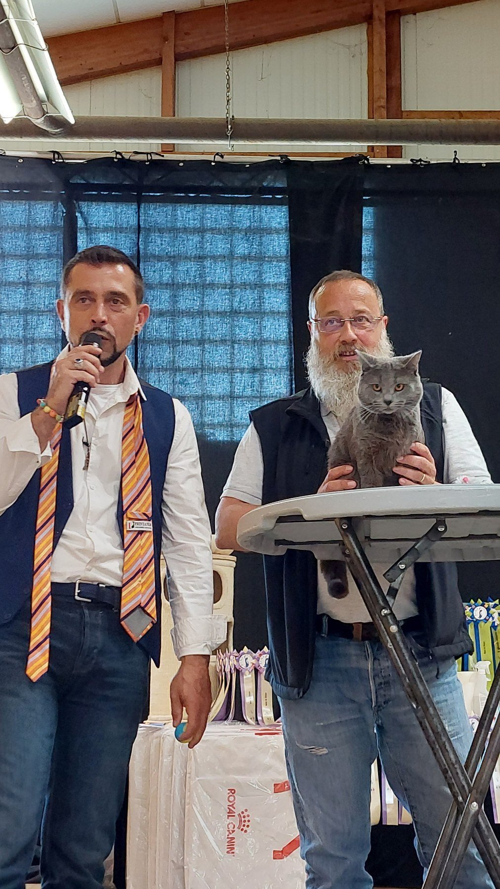 Ей този сладур собственикът го гонеше из залата (изплаши се от микрофона котето)