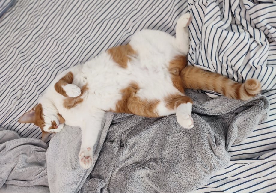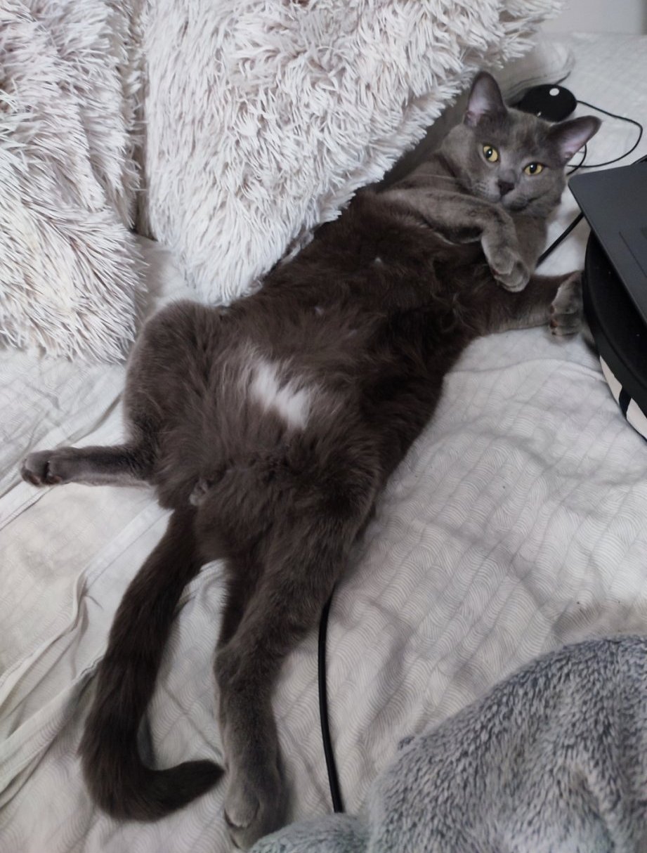 Нощем понякога ме побърква - вади изцяло нокти и се опитва да ги забие в мене. Все още има нещо вътре в чаршафа, но скоро ще го махна. А имам жестоки проблеми с единия крак и там в никакъв случай не трябва да посяга котешки нокът...