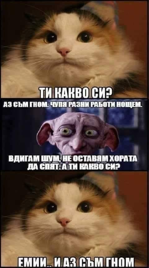 Питам го и аз: “какви ги вършиш сега… каква работа имаш там” ама не със тон, ами верно все едно детенце Simple Smile После го гнявя и му разправям, какви смешни идиотчета са котетата, и той се размазва от мър. А това ми е много любимо 😂
