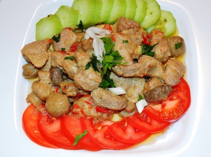 Нашите в края на туршийния сезон правеха свински мръвчици, на дребно, на тиган с изкисната туршия, за да не е прекалено кисело Simple Smile