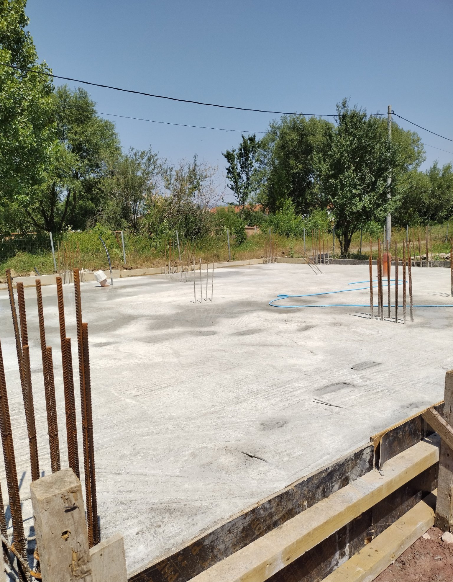 Вчера сутринта налят, бетона е поливан 5-6 пъти. За днес -само веднъж, но е много топло вече и бързо съхне.