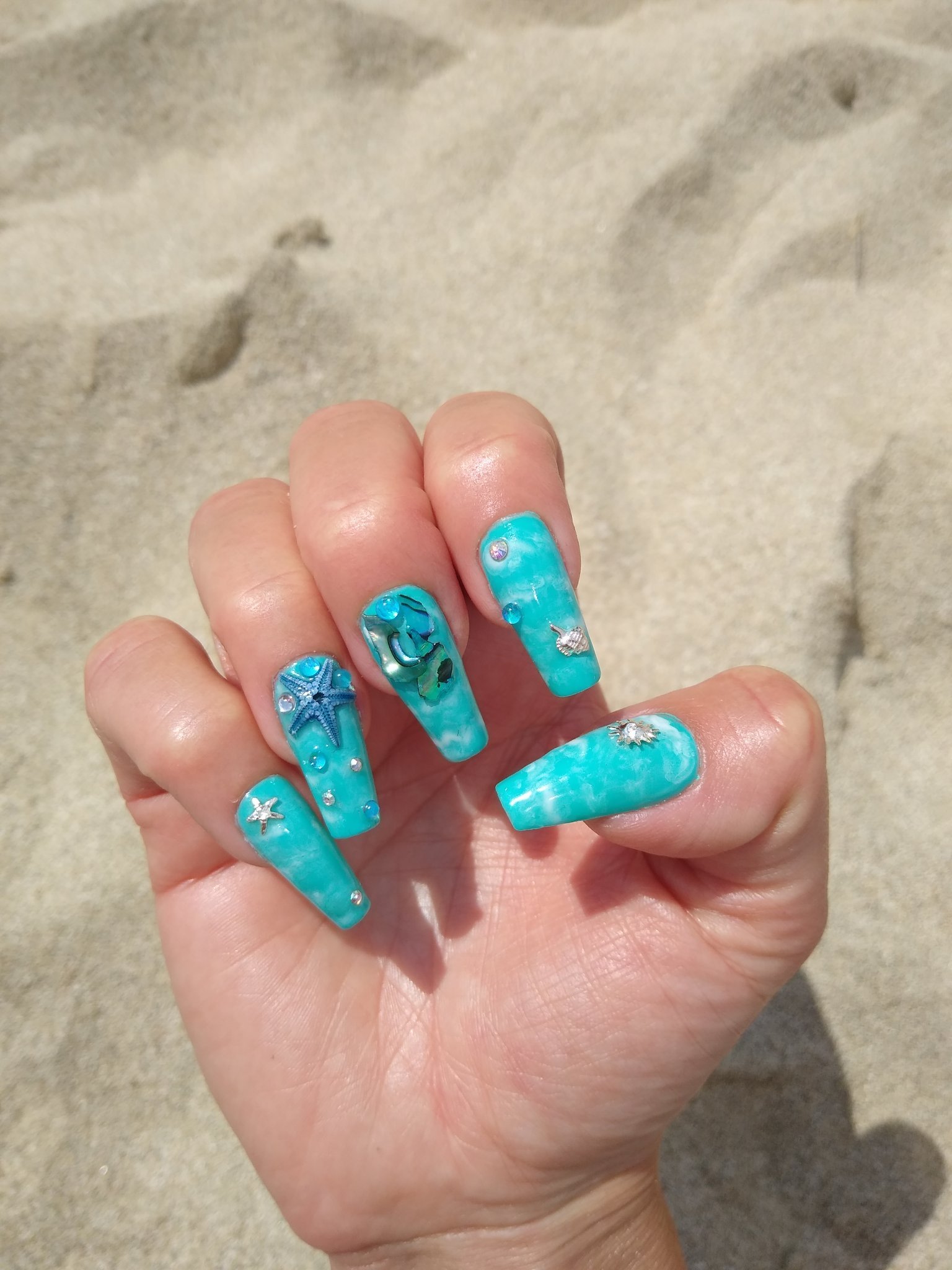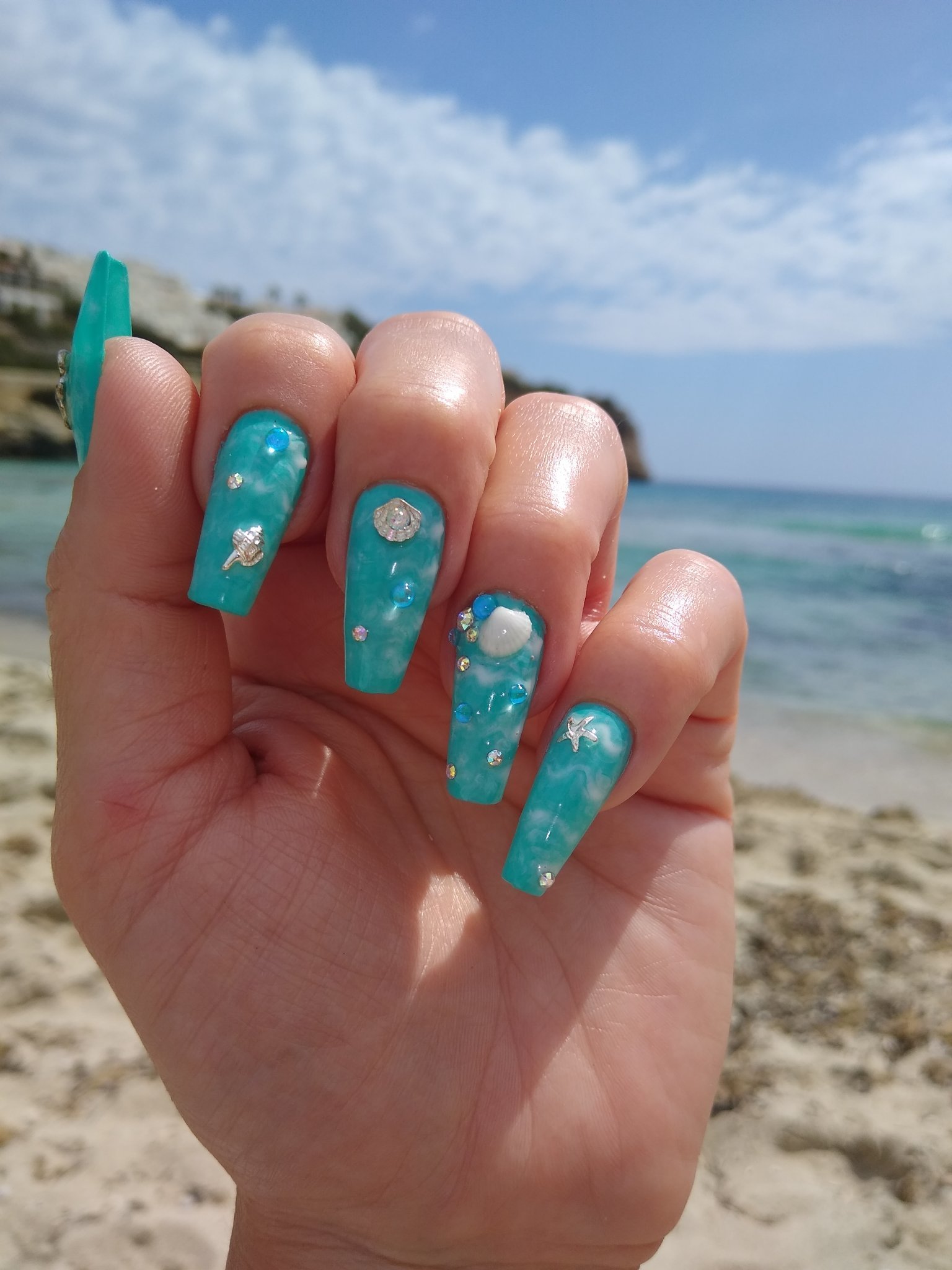 Морско дъно правя за 3- ти път, 3- то лято подред, и всеки път е с мидички, камъчета и т.н. отгоре. И минали лета съм го качвала тук. Но преди го правех на моите нокти.
