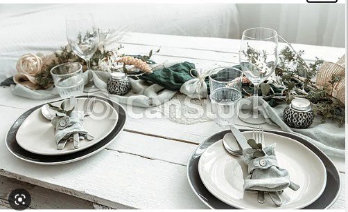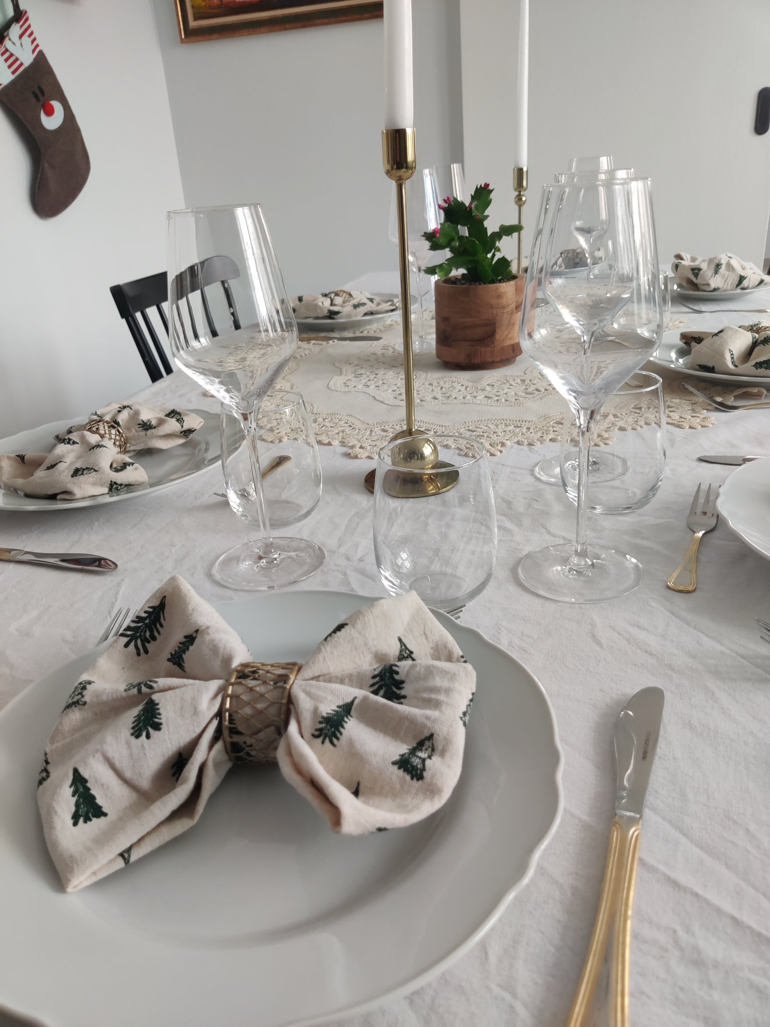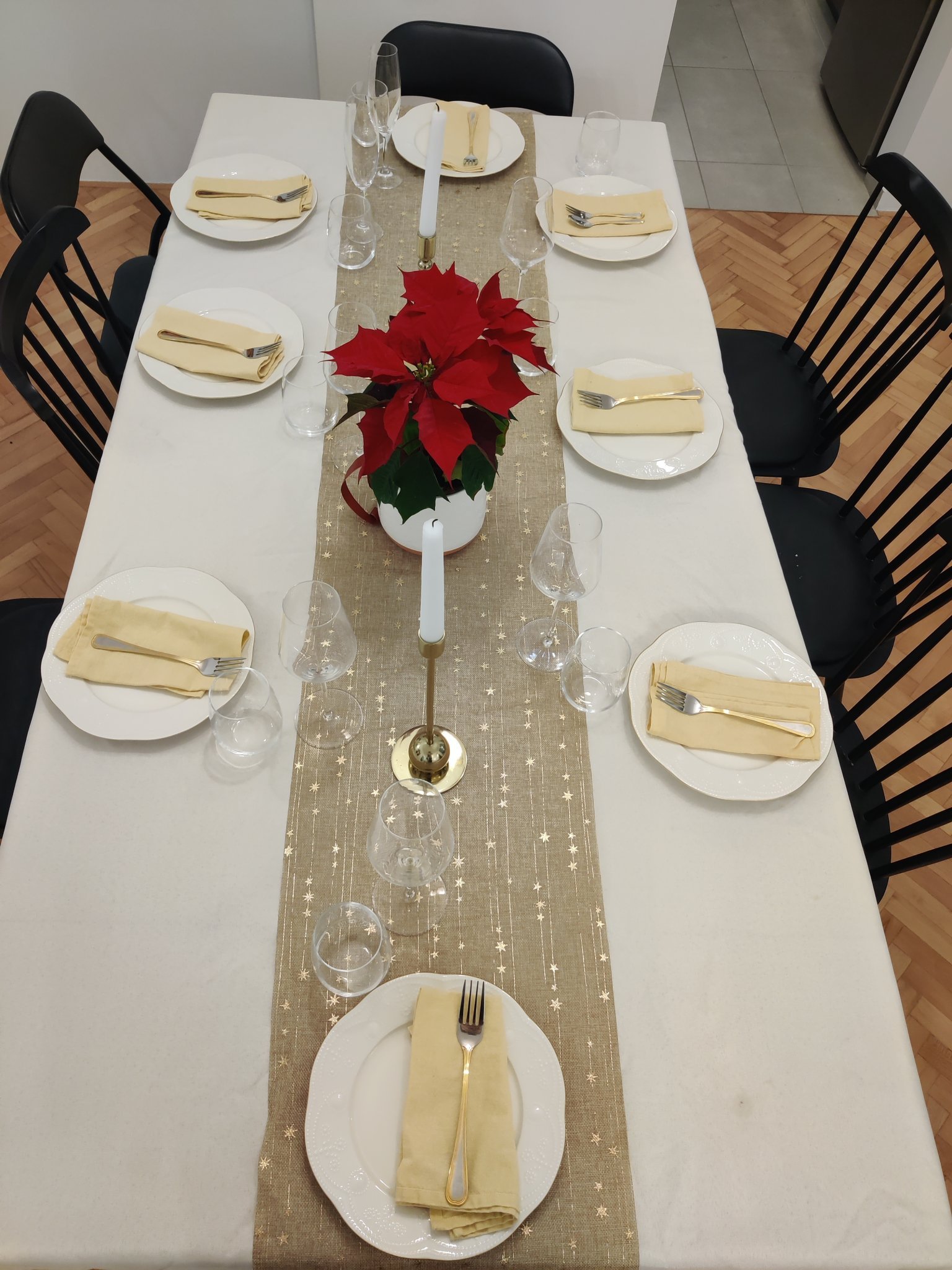 Петчленно семейство сме и ако има гости се редят големи маси. Едва сбутвам всичко. Освен нещо със салфетките или в самата чиния, иначе избягвам, в центъра на масата не редя дребни предмети. Вече не харесвам откъснати цветя, а само саксии, преди орхидеята стоеше на масата.
