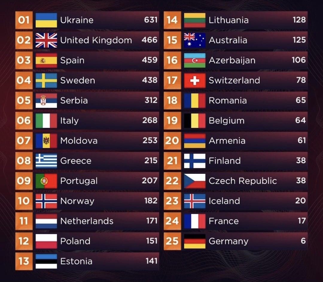 Победителят беше очакван заради войната. Не че нямаше да завършат в топ 5 и без нея, но едва ли щяха да са първи. Да не забравяме, че Евровизия е и политически конкурс. Създаден е след втората световна война и една от целите му е поддържане на добри приятелски отношения между държавите в Европа. Идеята е, че когато хората се забавляват и пеят заедно няма да искат да воюват помежду си.